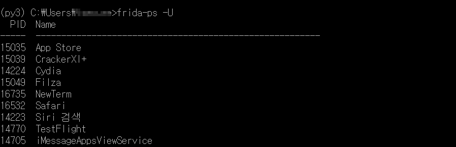 ํ๋ฆฌ๋ค ๋ฒ์ ์ด ๋ํ๋๋ฉด ์ ๋๋ก ์ค์น๋ ๊ฒ์ ๋๋ค. ๋ฒ์ ์ ํ์ธํ์ค ์ ์๋ค๋ฉด frida-tools๋ฅผ ์ค์นํด์ฃผ์ ์ผ ํฉ๋๋ค.
