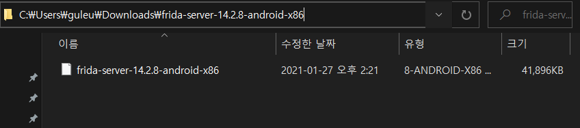 ๋ค์ด๋ก๋ํ ํ๋ฆฌ์๋ฒ ์์ถํ์ผ์ ํด์ ํ ์ด๋ฆ์ ์๋ณํ๊ธฐ ์ฝ๊ฒ "frida-server"๋ก ๋ณ๊ฒฝํ์ต๋๋ค.